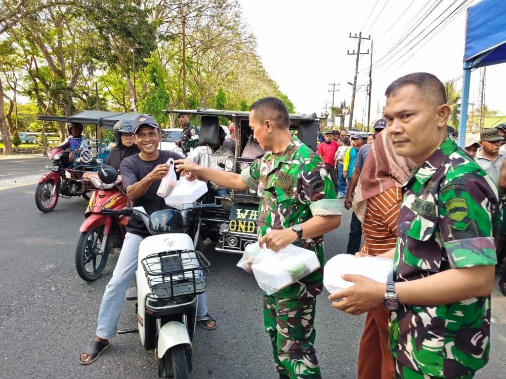 Pantauan di lokasi, aksi sosial ini menyasar para pejuang nafkah di jalanan, mulai dari sopir angkutan umum, driver ojek online, hingga pengendara pribadi. Para personel TNI tampak sigap menyambangi kendaraan yang melambat, menyapa warga dengan ramah, dan memberikan paket makanan berbuka.