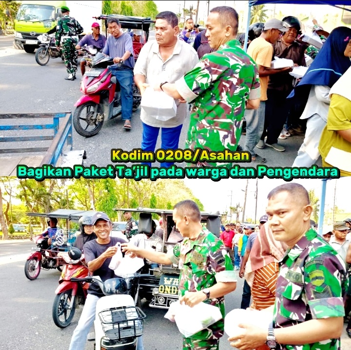 Semangat berbagi di bulan suci Ramadhan 1447 Hijriah terus dikobarkan jajaran Kodim 0208/Asahan. Tak sekadar menjaga teritorial, para prajurit TNI ini menunjukkan sisi humanis mereka dengan rutin membagikan paket takjil gratis kepada masyarakat yang melintas di depan Makodim 0208/Asahan setiap sore menjelang berbuka puasa.