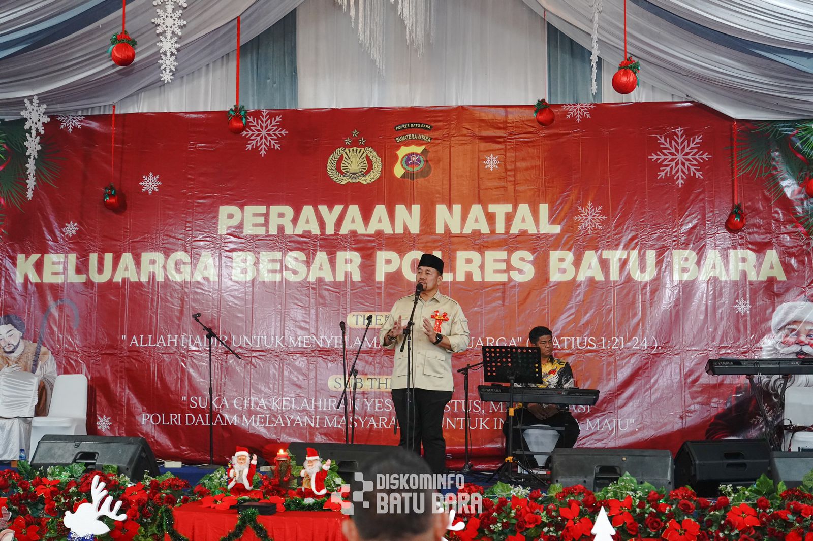 “Saya yakin dan percaya kepada Bapak Kapolres beserta Ibu sudah menjalankan toleransi keumatan, toleransi keagamaan yang cukup baik di Kabupaten Batu Bara, salah satu contoh bahwa panitia natal memberikan bantuan tidak hanya untuk gereja dan umat kristen saja, tetapi juga kepada umat muslim yang ada di Kabupaten Batu Bara,” ujar Bupati Batu Bara.