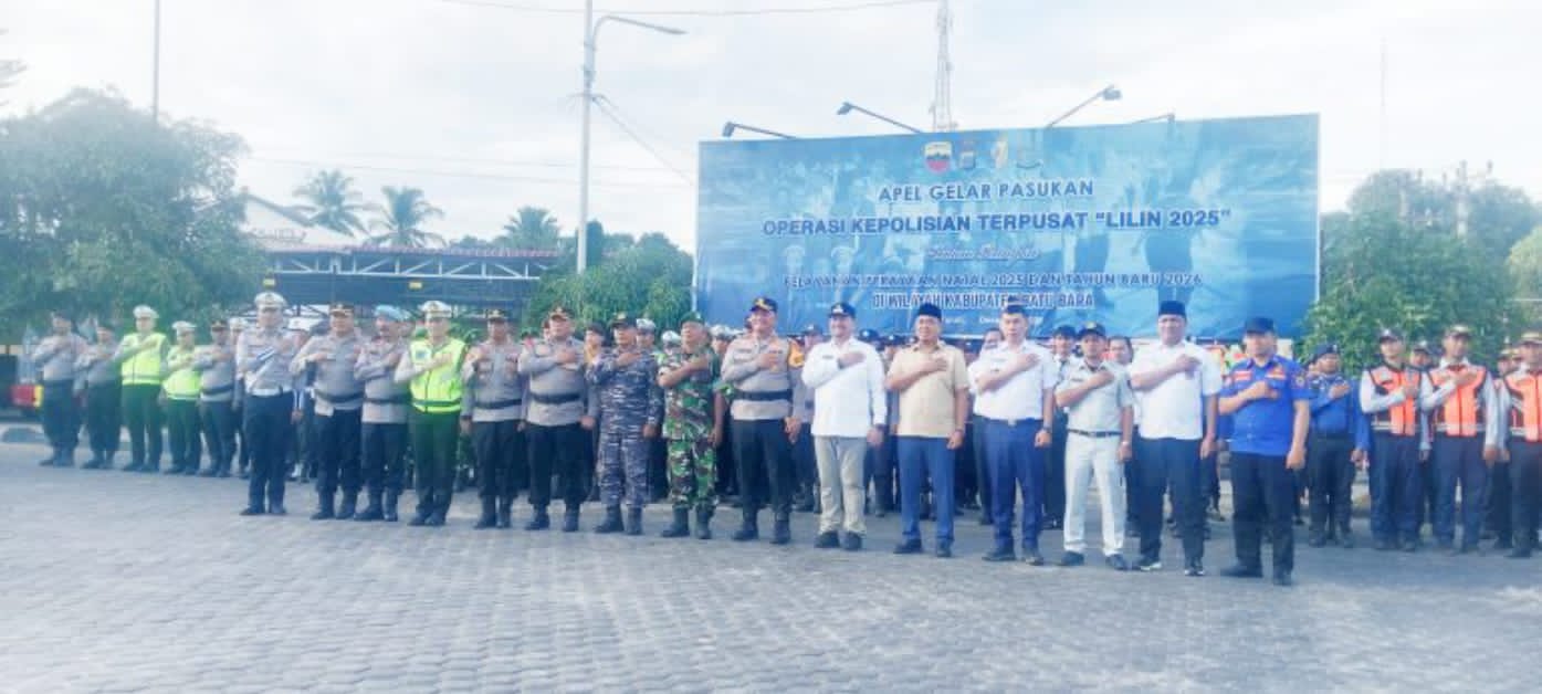 Polres Batu Bara menggelar Apel cek pada persiapan personel Pasukan Operasi Kepolisian Terpusat Lilin Toba 2025 dalam rangka pengamanan perayaan Natal 2025 dan Tahun Baru 2026, di Lapangan Apel Mapolres Batu Bara Sumatera Utara, Jum’at (19/12/2025).