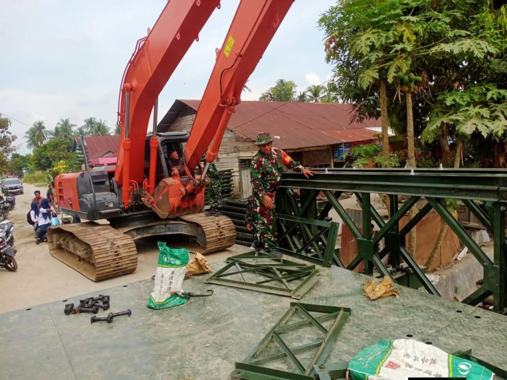 Kodim 0208/Asahan Kerja Siang Malam Percepat Pembangunan Jembatan Modular di Desa Lubuk Palas
