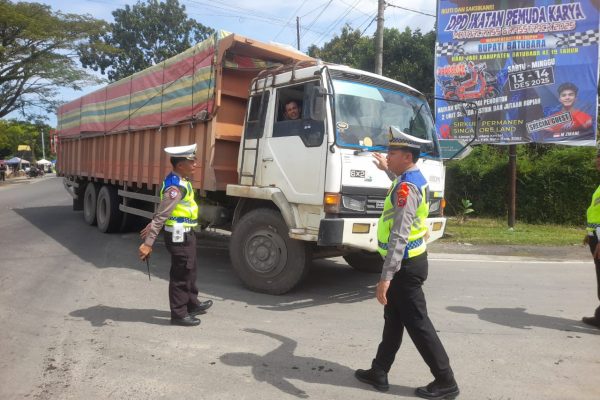 Sat Lantas Polres Batu Bara Berikan Himbauan kepada Supir Truck dalam Rangka Ops Lilin Toba 2025