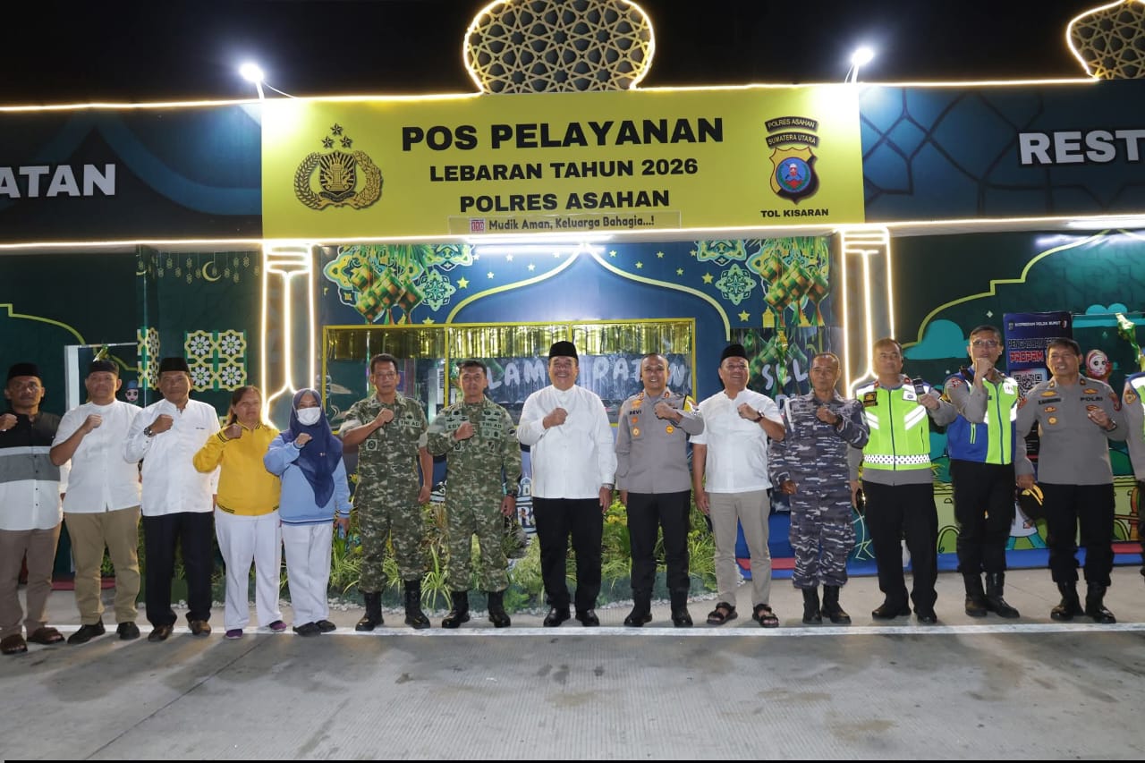 Dalam rangka memastikan kelancaran arus mudik Hari Raya Idul Fitri 1447 H, Komandan Kodim (Dandim) 0208/Asahan Letkol Inf Edy Syahputra, S.H., M.I.P. bersama Bupati Asahan Taufik Zainal Abidin, S.Sos., M.Si. dan unsur Forum Koordinasi Pimpinan Daerah (Forkopimda) melaksanakan peninjauan Pos Pelayanan Lebaran yang berada di pintu Exit Tol Kisaran, Jum’at (20/3/2026).