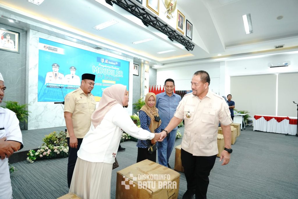 Pemerintah Kabupaten Batu Bara bersama PT Indonesia Asahan Aluminium (PT INALUM) menyalurkan bantuan mobiler sekolah kepada satuan pendidikan di seluruh kecamatan se-Kabupaten Batu Bara. Penyerahan bantuan dilaksanakan di Aula Rumah Dinas Bupati Batu Bara, Kecamatan Sei Suka, Selasa (23/12/2025).