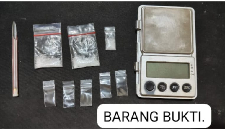 Saat dilakukan penggeledahan, petugas menemukan barang bukti berupa dua plastik klip transparan berisi sabu dengan berat brutto masing-masing 2,31 gram dan 0,30 gram, lima plastik klip kosong, satu pipet berbentuk sekop, serta satu unit timbangan digital. Dari hasil interogasi awal, tersangka mengakui kepemilikan barang haram tersebut.