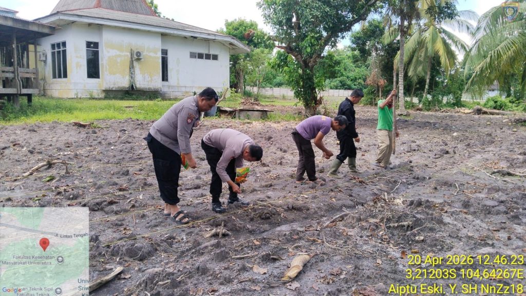OGAN ILIR // Sergap24jam. Com – Polres Ogan Ilir melalui Polsek Indralaya terus menunjukkan komitmennya dalam mendukung program ketahanan pangan nasional. Salah satu langkah nyata diwujudkan melalui kegiatan penanaman jagung yang dilaksanakan di lahan PT Gembala Sriwijaya, Desa Tanjung Pering, Kecamatan Indralaya Utara, Kabupaten Ogan Ilir, Senin (20/4/2026) sekitar pukul 13.00 WIB.