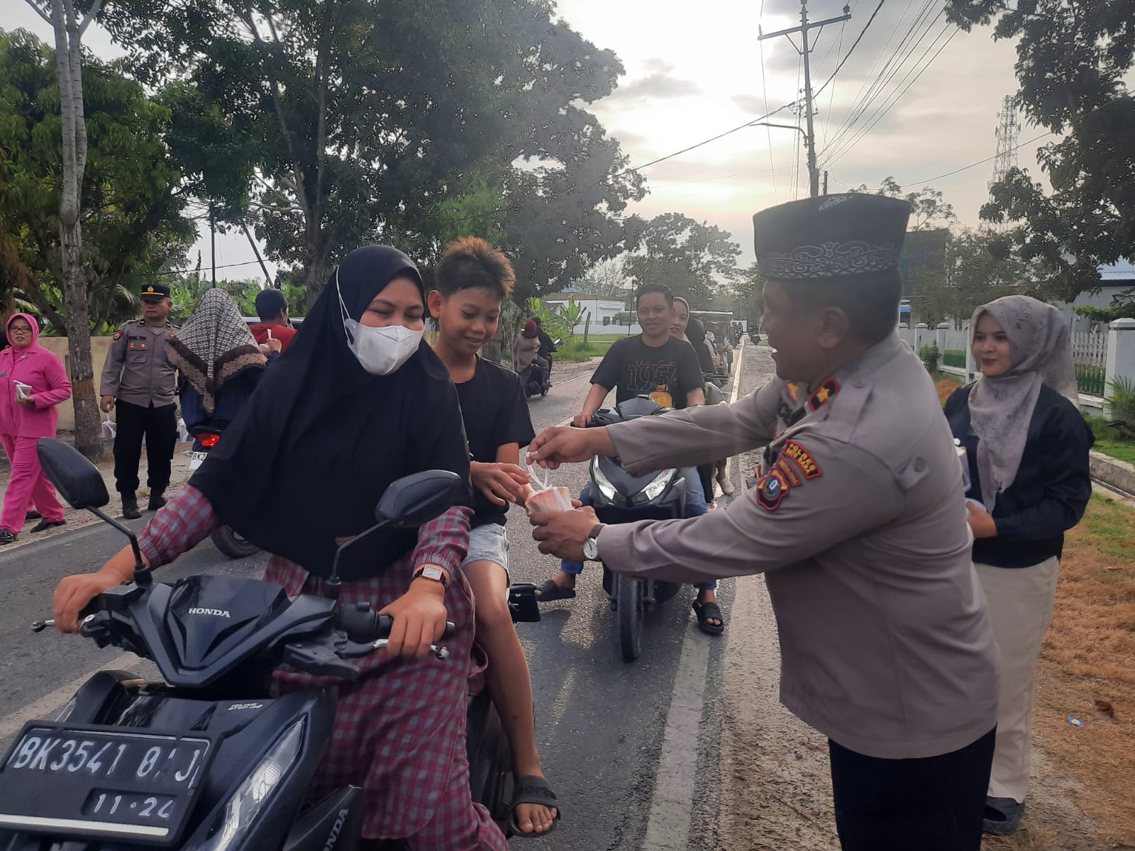 “Melalui kegiatan ini, kami ingin berbagi kebahagiaan dengan masyarakat, khususnya para pengendara sepeda motor dan warga sekitar Mapolsek yang sedang dalam perjalanan menjelang waktu berbuka puasa,” ujarnya.