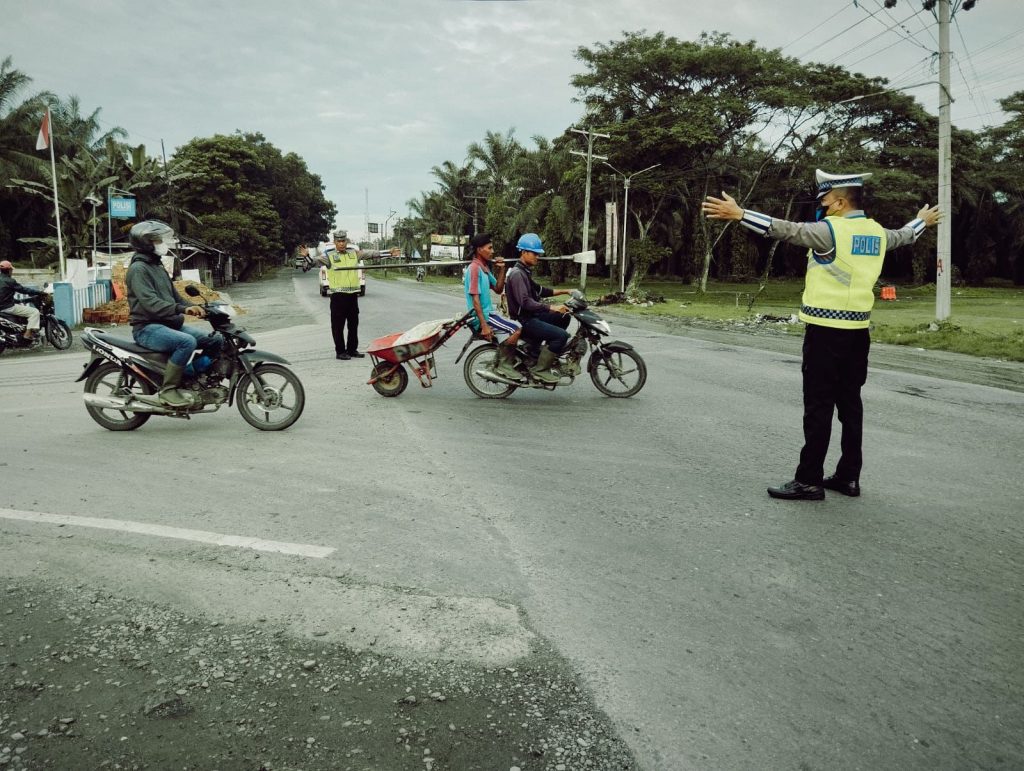 Sat Lantas Polres Batu Bara Laksanakan Pengaturan Lalu Lintas Pagi di Jalinsum Sei Bejangkar