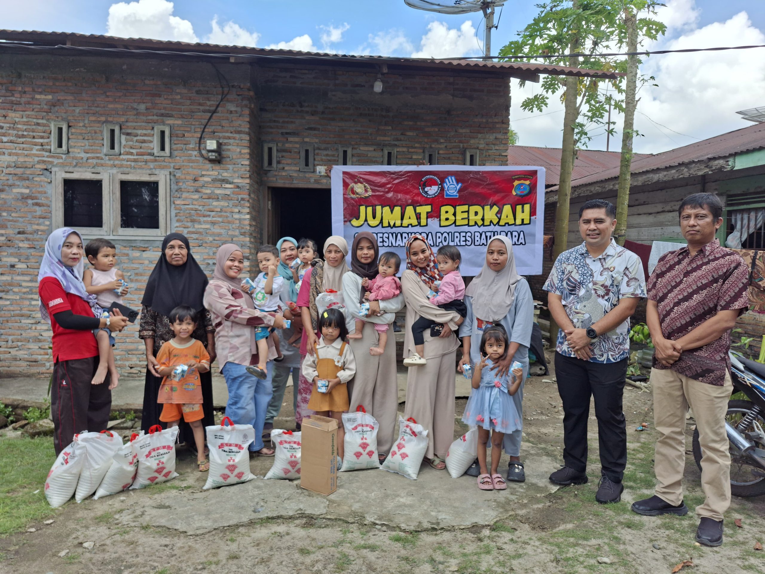 Sumatra Utara Batu Bara ( Media Sergap 24 Jam .Com)Dalam rangka kepedulian sosial sekaligus upaya pencegahan penyalahgunaan narkoba, Satresnarkoba Polres Batu Bara melaksanakan kegiatan Jum’at Berkah pada Jumat, 10 April 2026 sekira pukul 12.15 WIB hingga selesai, bertempat di Desa Perkebunan Dolok Pop, Kecamatan Lima Puluh, Kabupaten Batu Bara.