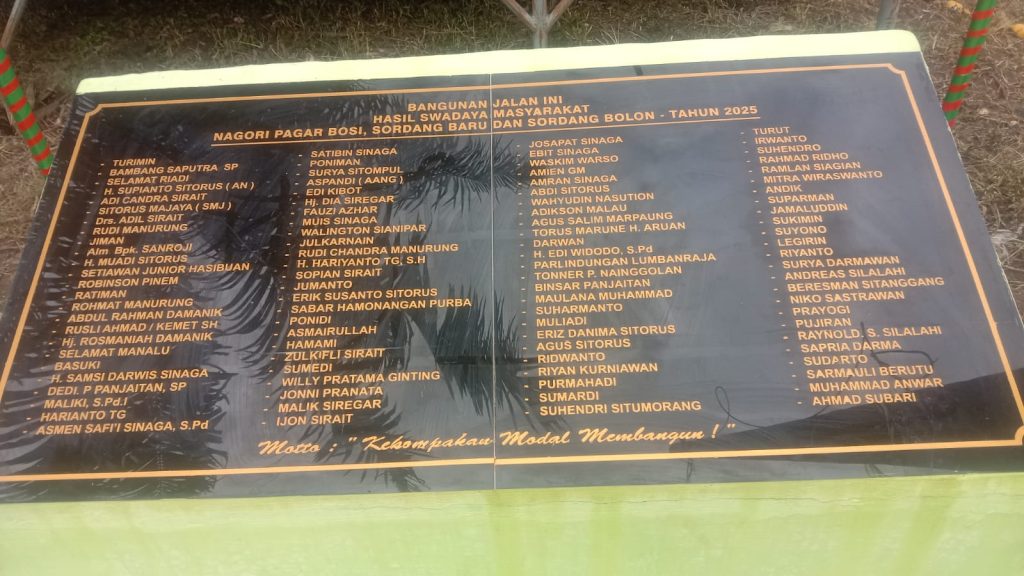 Simalungun– Sergab24jam.com Masyarakat dari tiga nagori yaitu Pagar Bosi, Sordang Baru, dan Sordang Bolon Kecamatan Ujung Padang, Kabupaten Simalungun, Sumatera Utara menggelar acara syukuran sebagai bentuk rasa terima kasih atas selesainya pembangunan jalan rabat beton yang diwujudkan melalui kerja sama swadaya masyarakat, Selasa (17/2/2026).